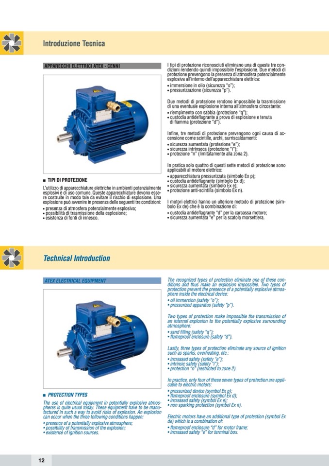 • custodia antideflagrante “d” per la carcassa motore;