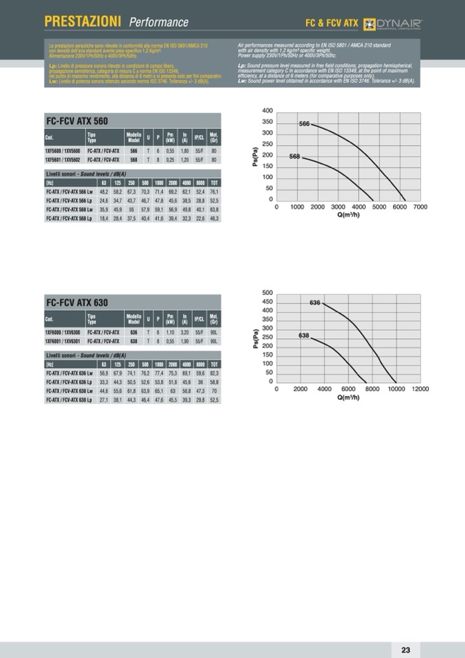Le prestazioni aerauliche sono rilevate in conformità alla norma EN ISO 5801/AMCA 210