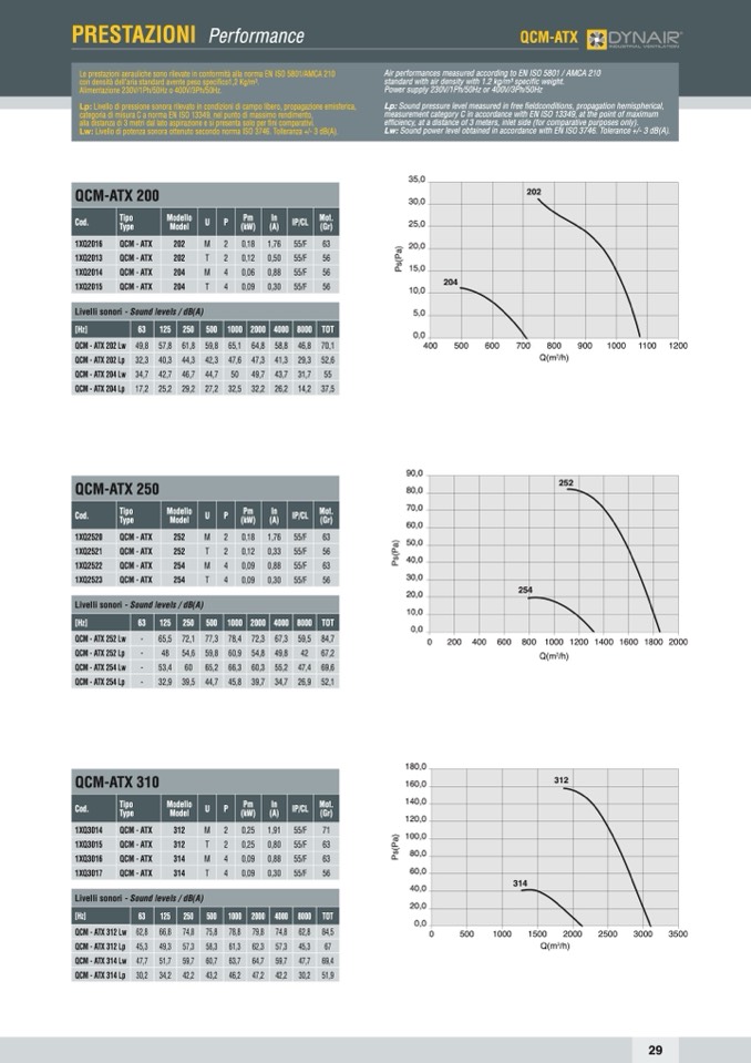 Le prestazioni aerauliche sono rilevate in conformità alla norma EN ISO 5801/AMCA 210