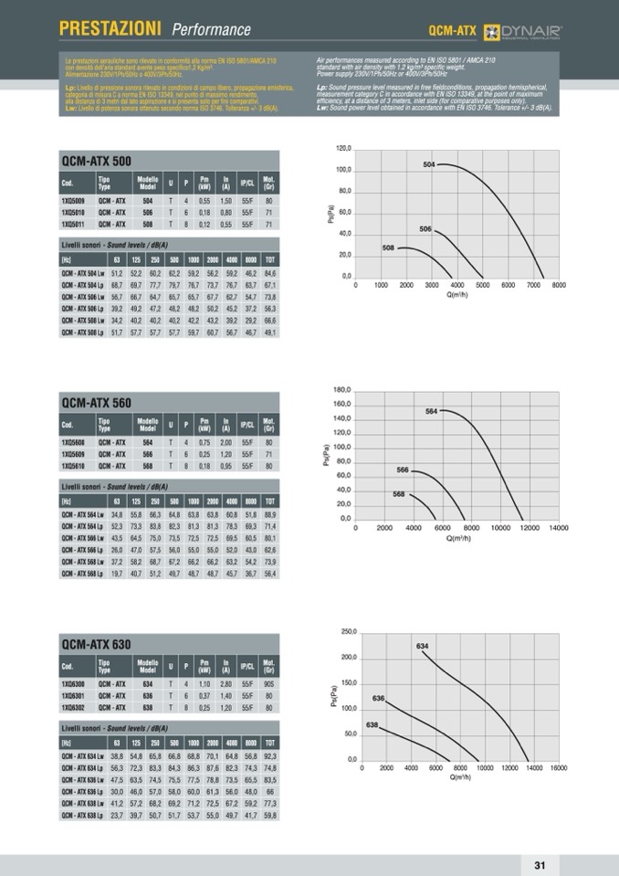 Le prestazioni aerauliche sono rilevate in conformità alla norma EN ISO 5801/AMCA 210