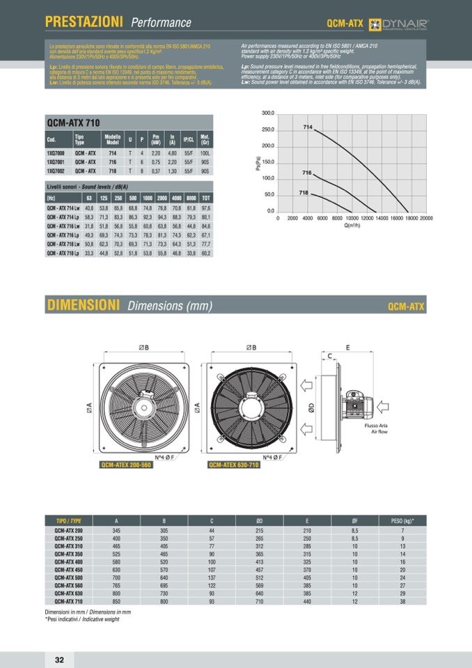 Le prestazioni aerauliche sono rilevate in conformità alla norma EN ISO 5801/AMCA 210