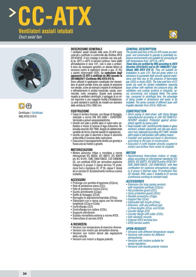 These fans are certified by IMQ according to ATEX