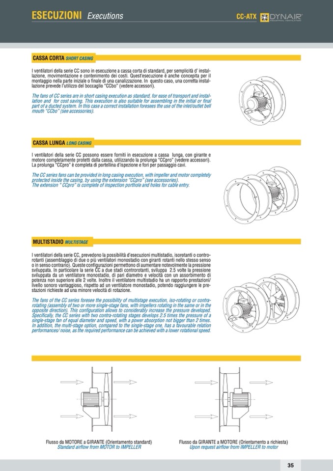 The fans of CC series are in short casing execution as standard, for ease of transport and instal-