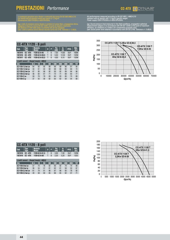Le prestazioni aerauliche sono rilevate in conformità alla norma EN ISO 5801/AMCA 210