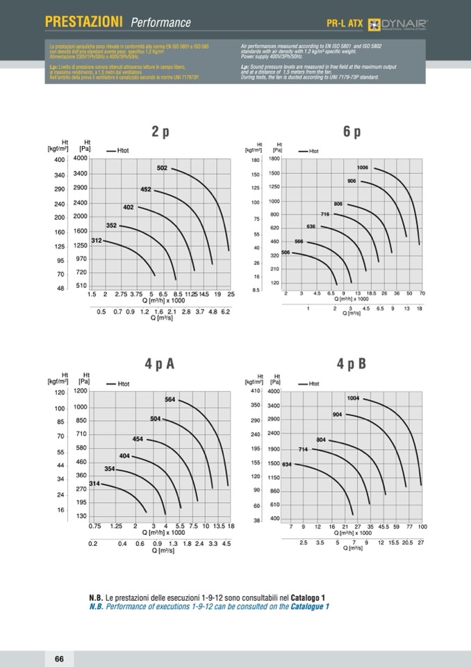 Le prestazioni aerauliche sono rilevate in conformità alla norma EN ISO 5801 e ISO 580