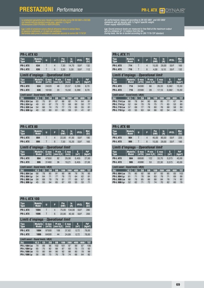 Le prestazioni aerauliche sono rilevate in conformità alla norma EN ISO 5801 e ISO 580