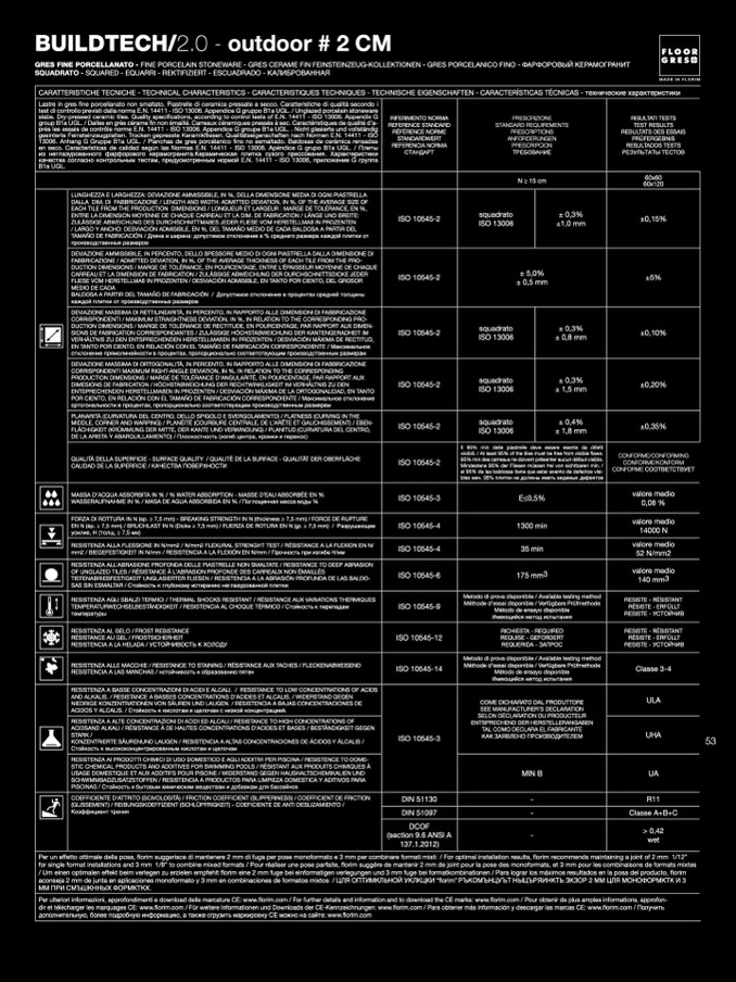 Per ulteriori informazioni, approfondimenti e download delle marcature CE: www.florim.com / For further details and information and to download the CE marks: www.florim.com / Pour obtenir de plus amples informations, approfon-