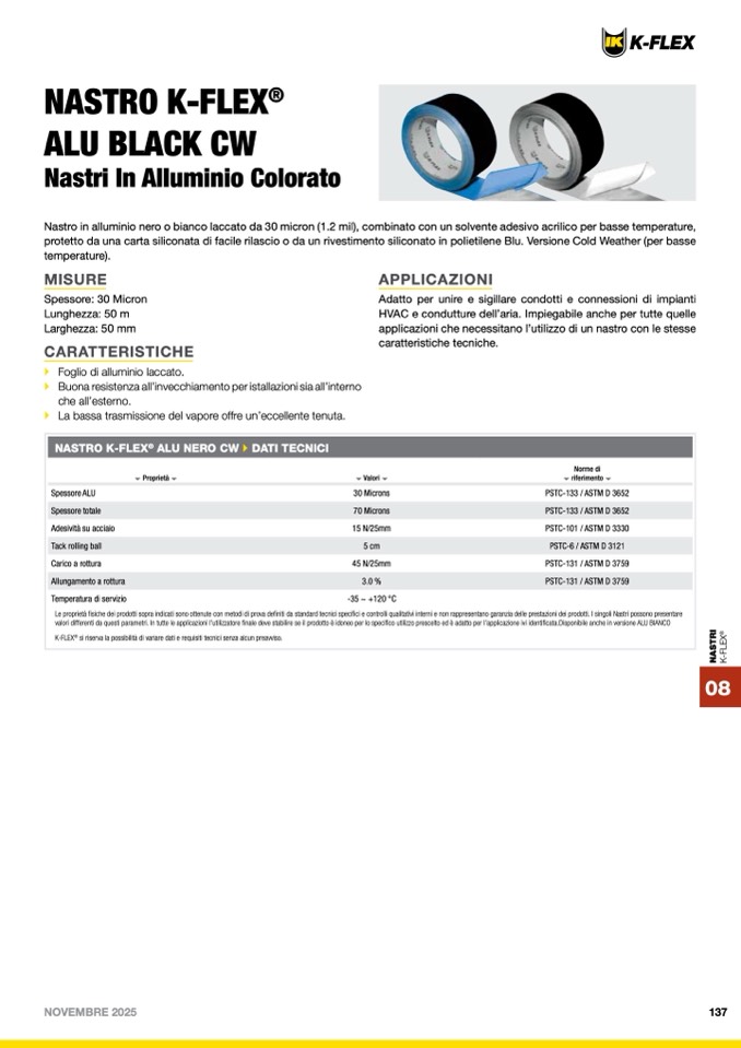 NASTRO K-FLEX® ALU NERO CW DATI TECNICI