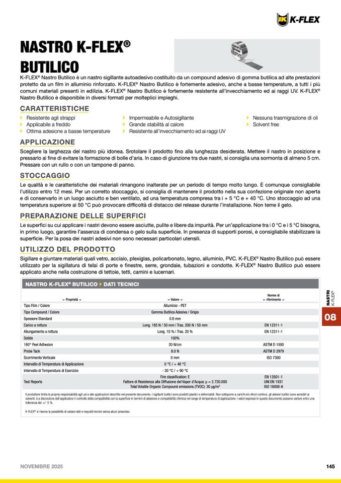 NASTRO K-FLEX® BUTILICO DATI TECNIC