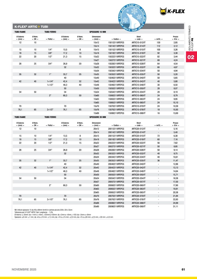 Tolleranza per K-FLEX® ARTIC Tubi: Lunghezza: - 1,5%