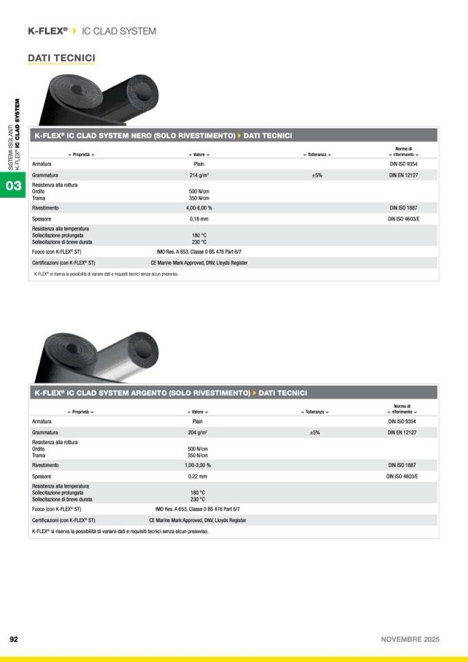 K-FLEX® IC CLAD SYSTEM NERO (SOLO RIVESTIMENTO)  DATI TECNICI