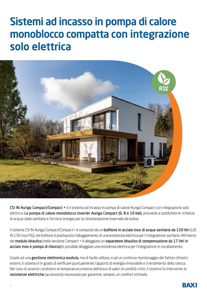 CSI IN Auriga Compact/Compact + è il sistema ad incasso in pompa di calore Auriga Compact con integrazione solo
