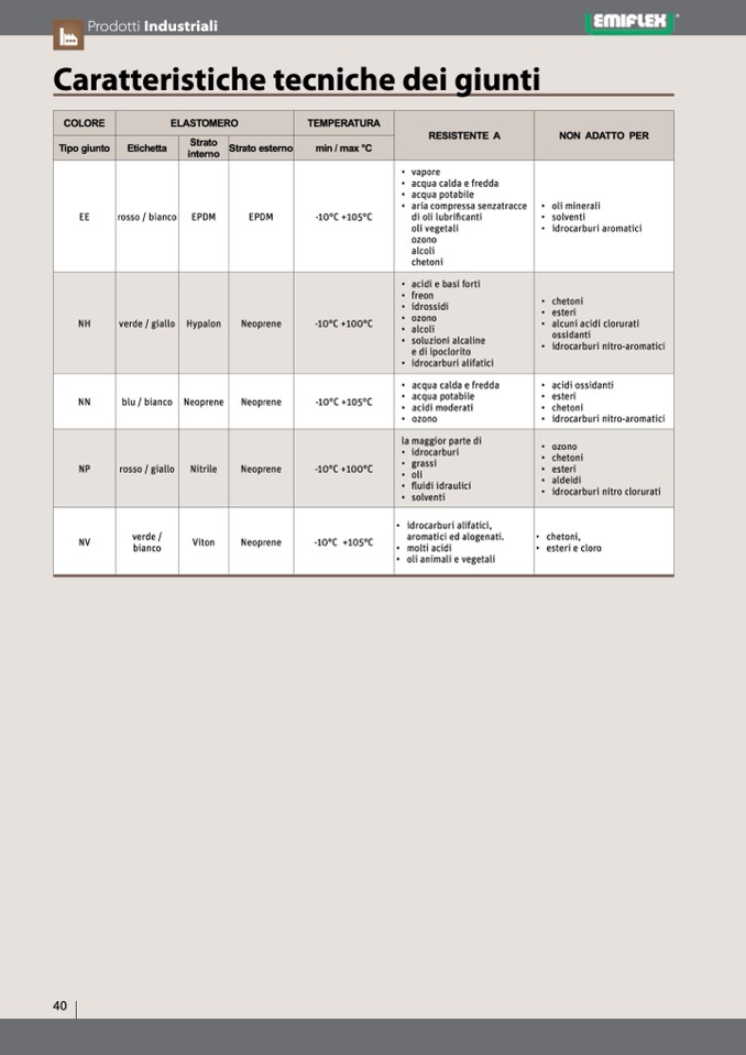 Caratteristiche tecniche dei giunti