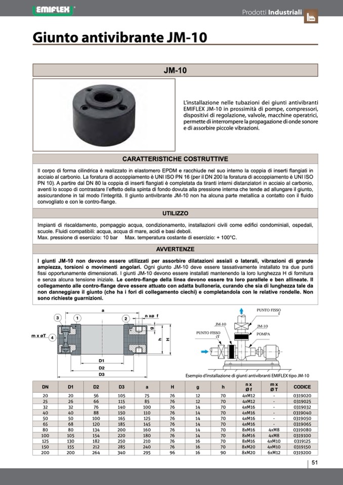 assicurandone in tal modo l’integrità. Il giunto antivibrante JM-10 non ha alcuna parte metallica a contatto con il fluido