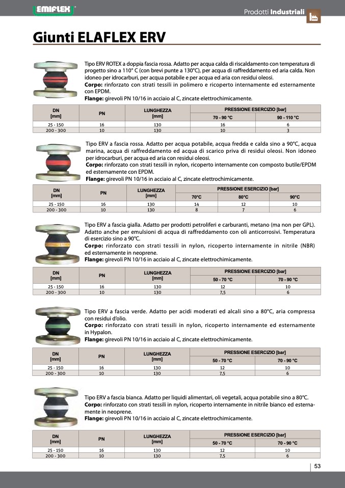 Tipo ERV a fascia verde. Adatto per acidi moderati ed alcali sino a 80°C, aria compressa