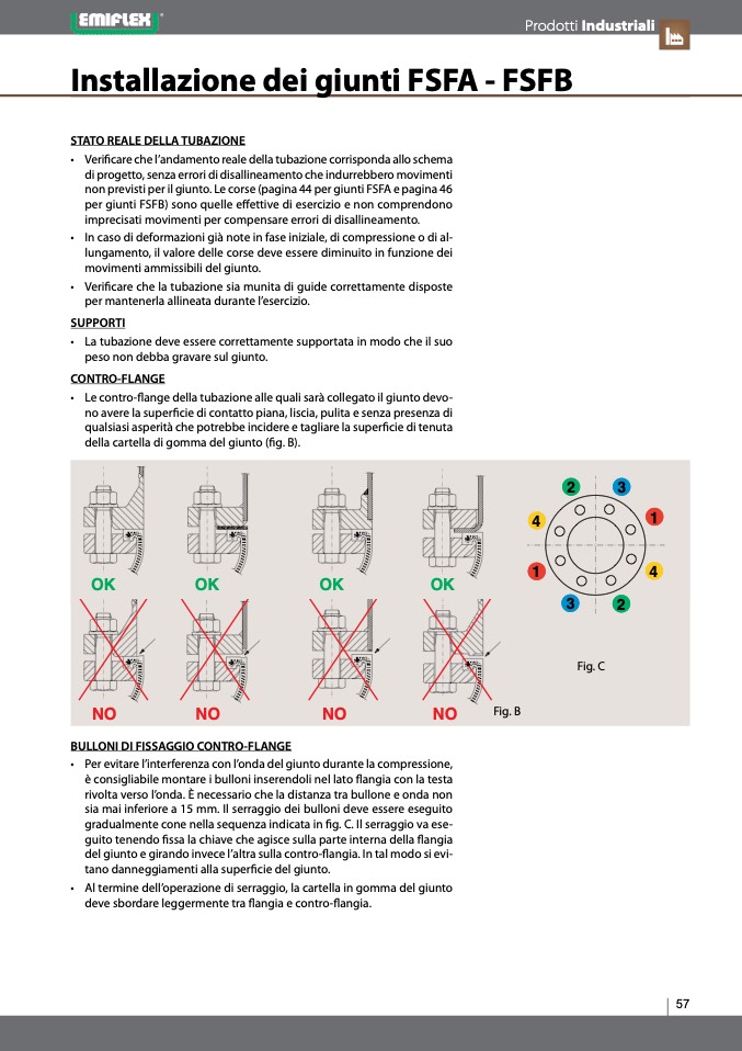 del giunto e girando invece l’altra sulla contro-flangia. In tal modo si evi-
