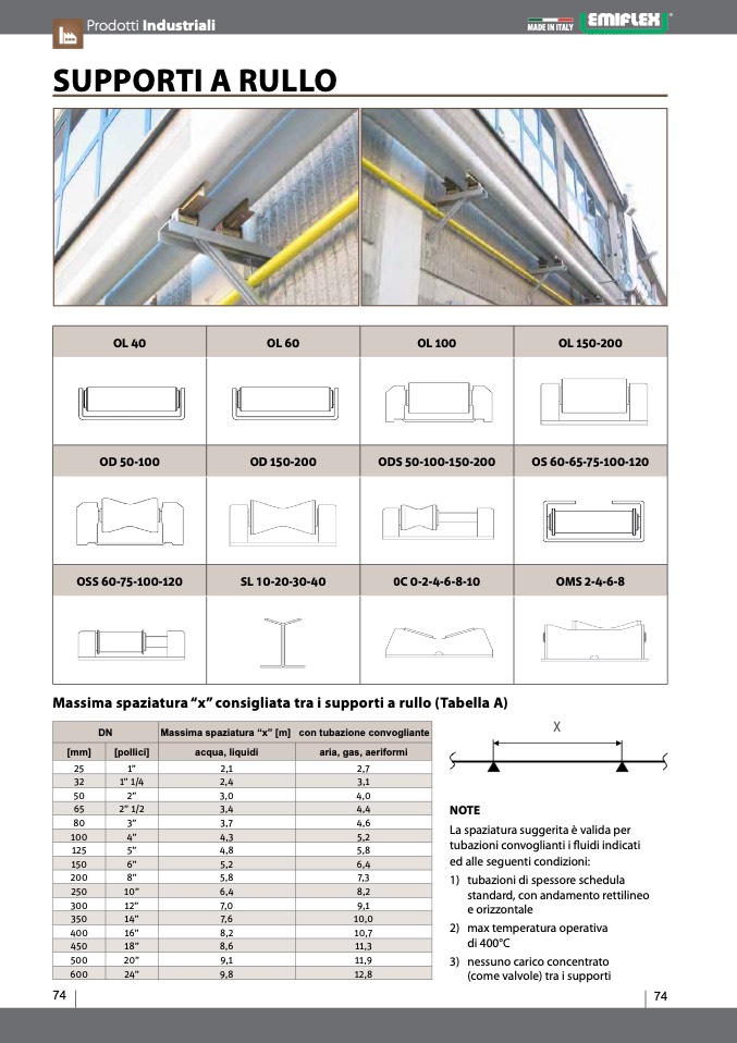 Massima spaziatura “x” [m] con tubazione convogliante