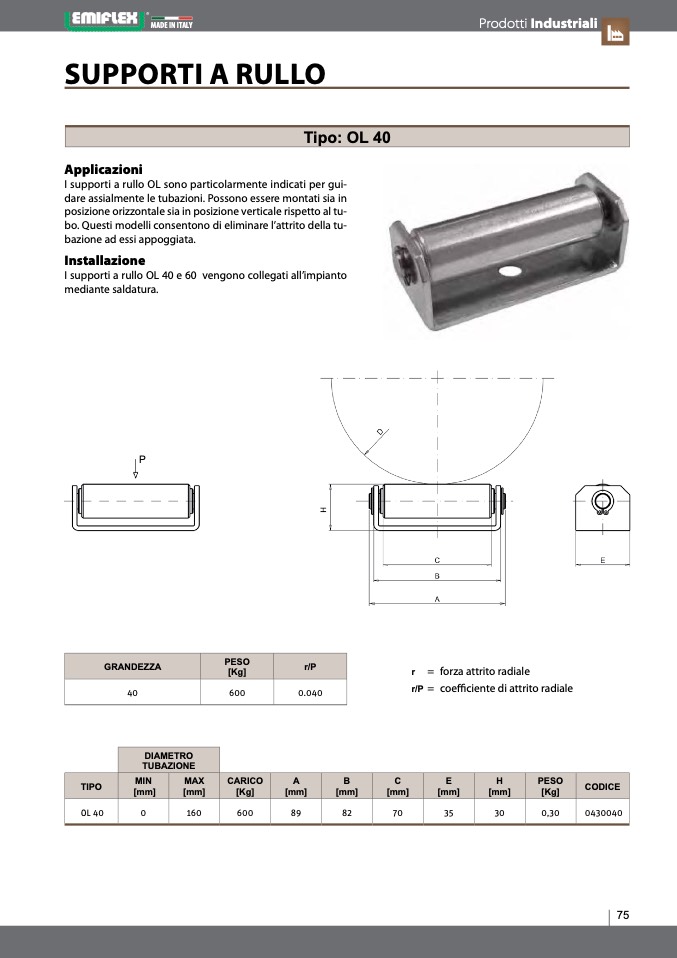 I supporti a rullo OL sono particolarmente indicati per gui-