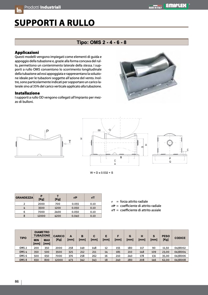 porti a rullo OMS consentono lo scorrimento longitudinale