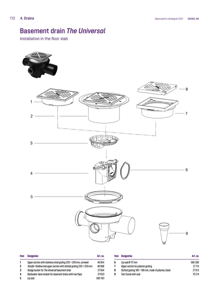 Upper section with stainless steel grating 200 × 200 mm, screwed