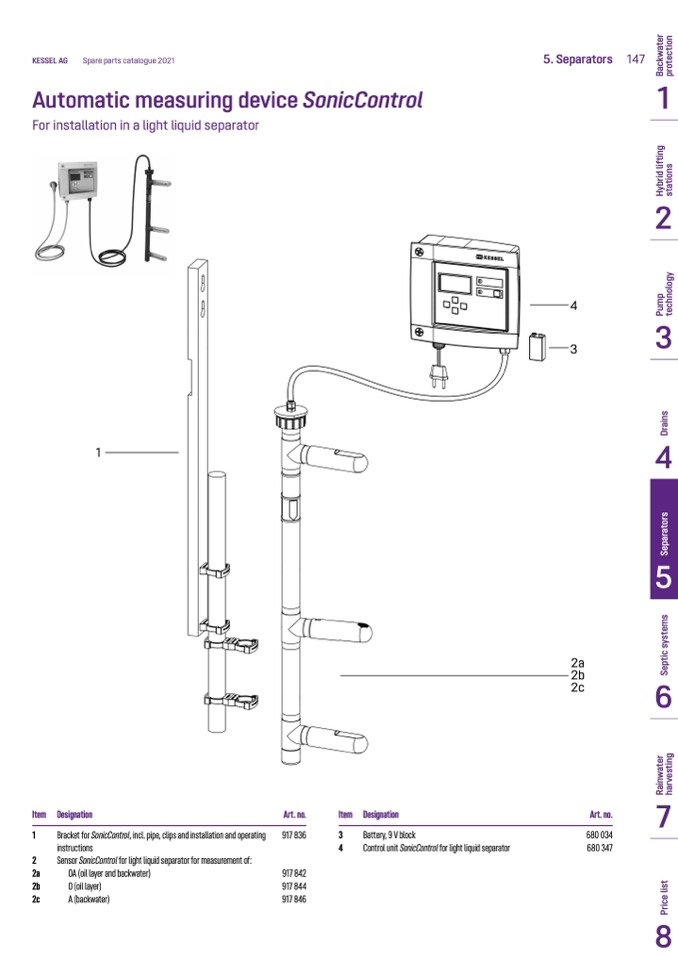 Sensor SonicControl for light liquid separator for measurement of: