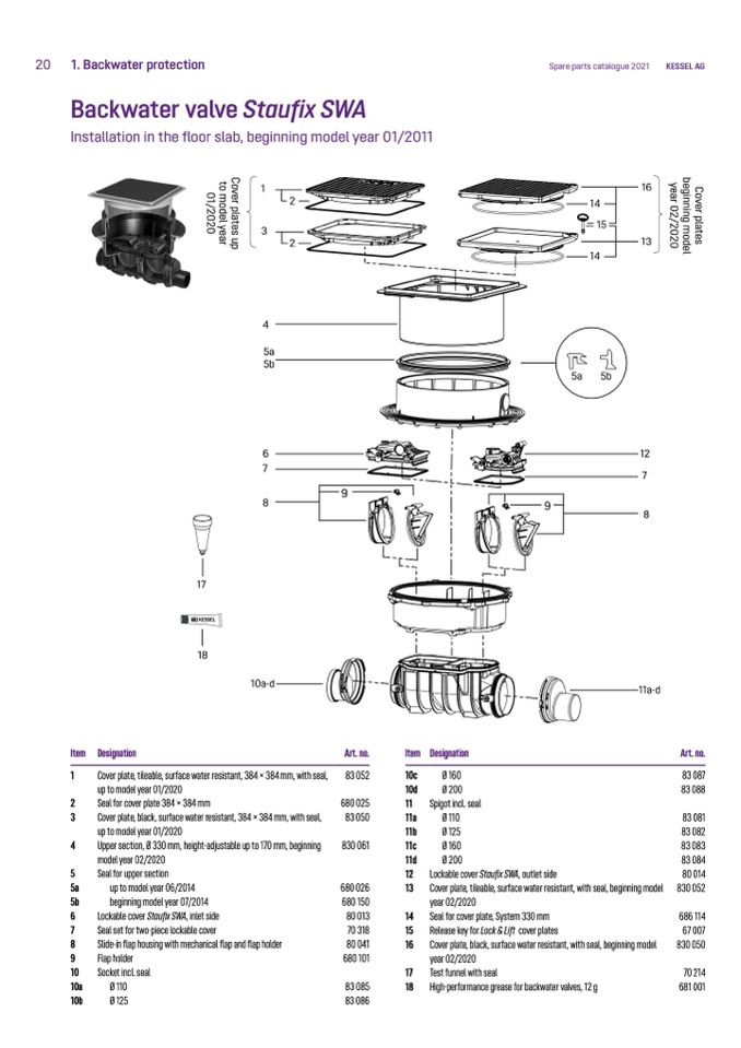 Lockable cover Staufix SWA, inlet side