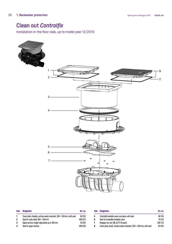 Cover plate, tileable, surface water resistant, 384 × 384 mm, with seal