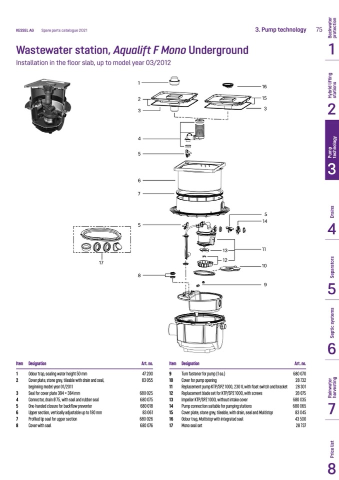 Odour trap, Multistop with integrated seal