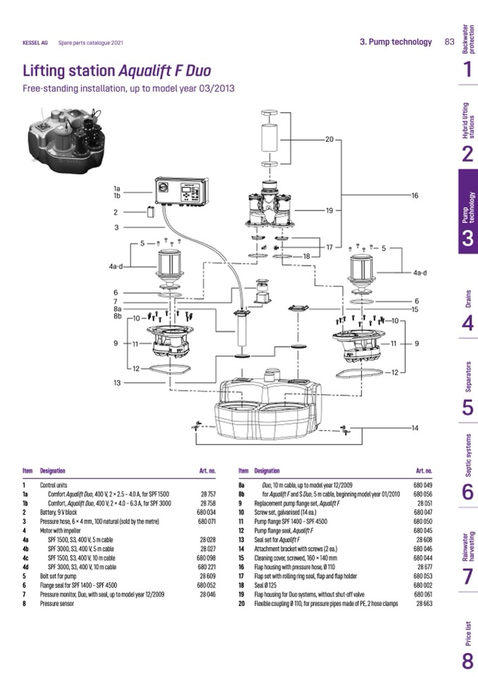 Replacement pump flange set, Aqualift F