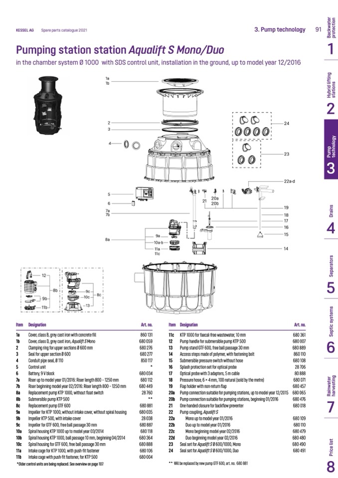 ** Will be replaced by new pump GTF 600, art. no. 680 881