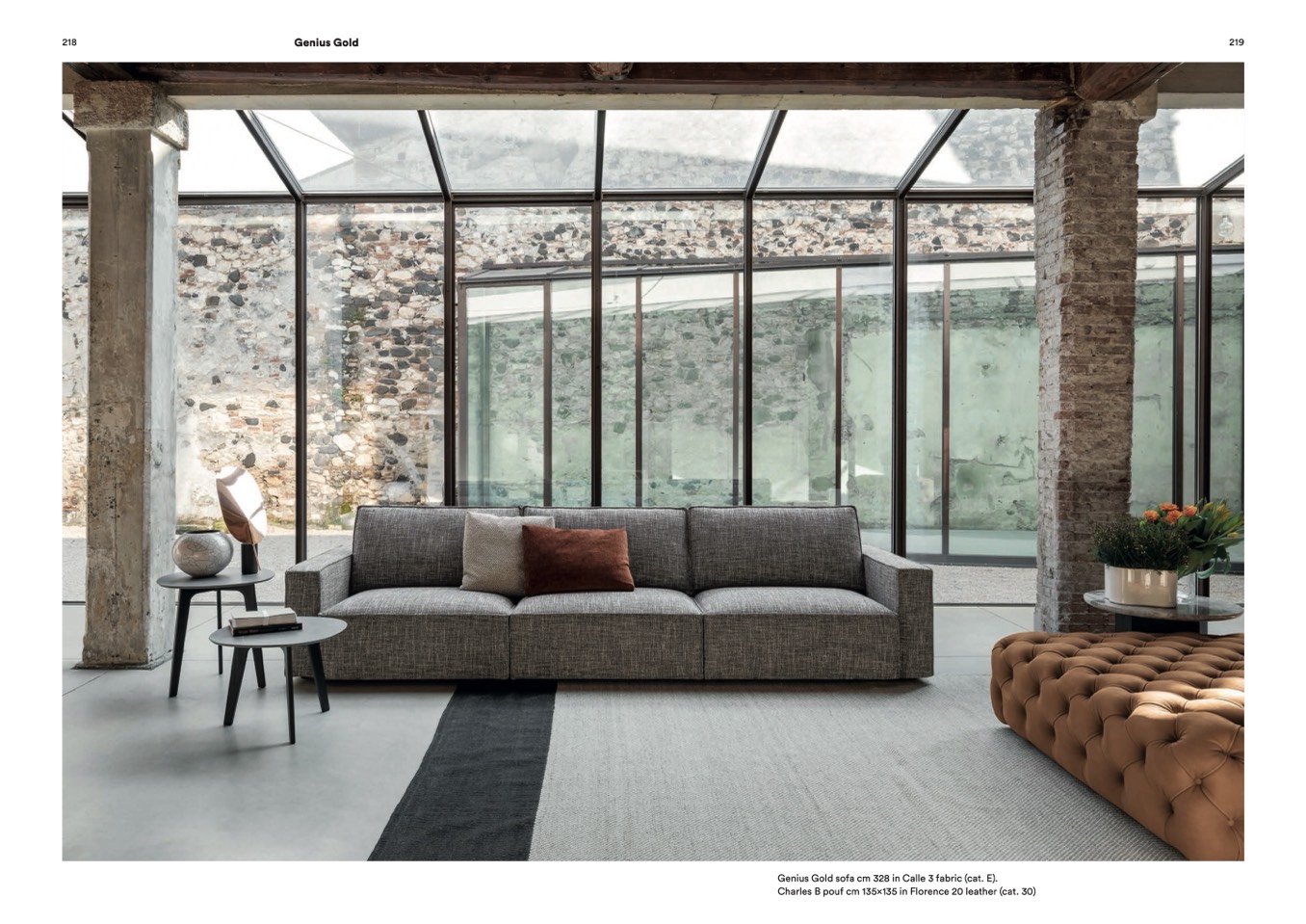 Genius Gold sofa cm 328 in Calle 3 fabric (cat. E).