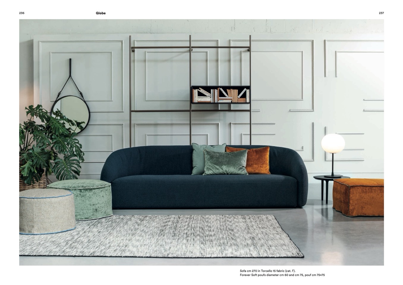 Sofa cm 270 in Torcello 15 fabric (cat. F).
