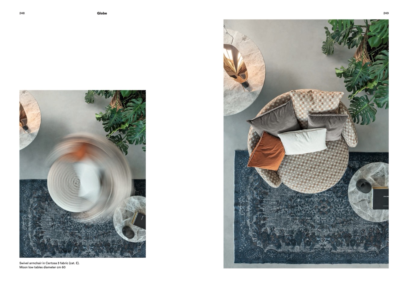 Swivel armchair in Certosa 3 fabric (cat. E).