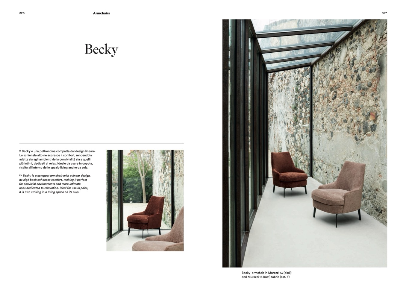 Becky is a compact armchair with a linear design.