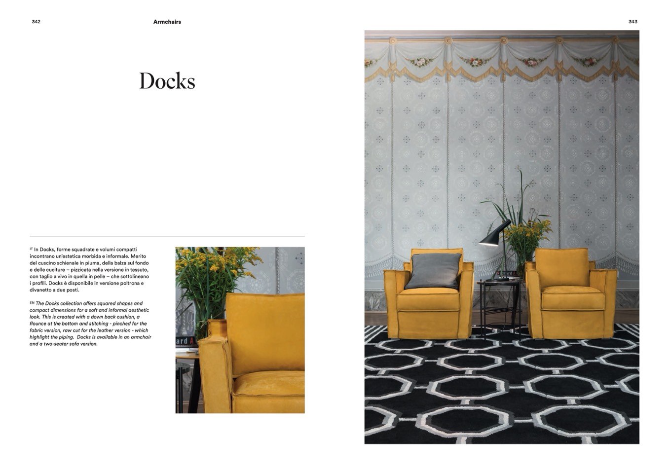 highlight the piping. Docks is available in an armchair