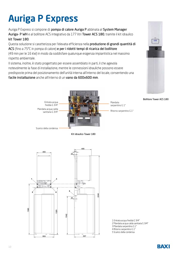 Auriga- P WH e al bollitore ACS integrativo da 177 litri Tower ACS 180, tramite il kit idraulic