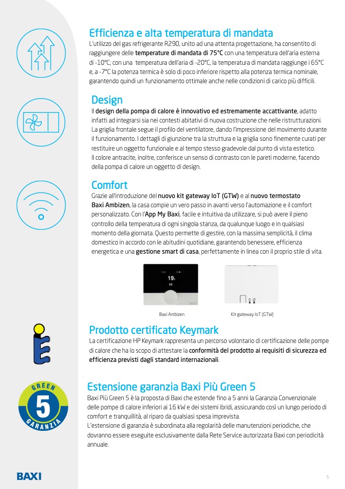 Baxi Più Green 5 è la proposta di Baxi che estende fino a 5 anni la Garanzia Convenzionale