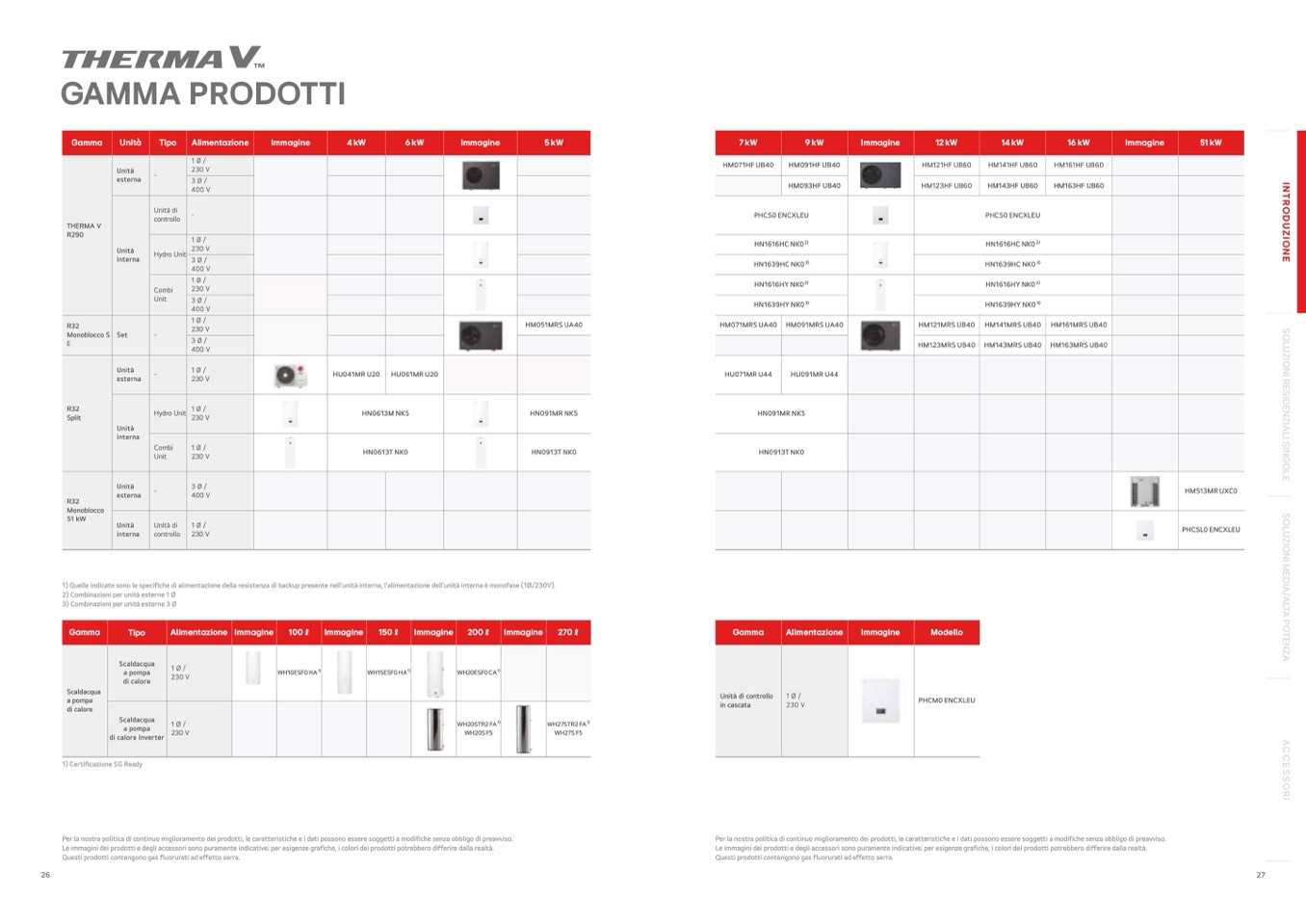 2) Combinazioni per unità esterne 1 Ø