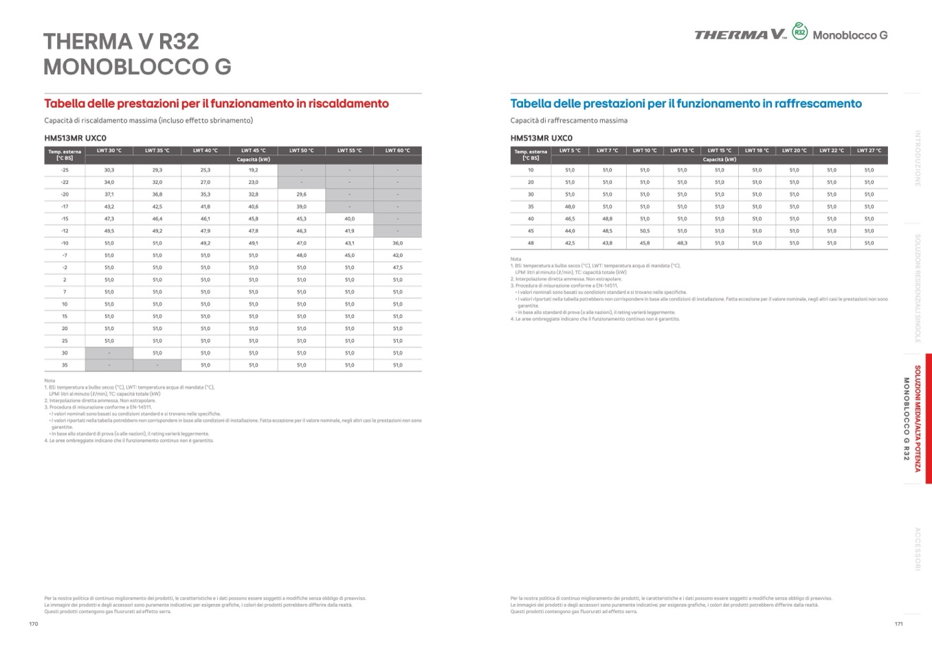 LPM: litri al minuto (l/min), TC: capacità totale (kW)