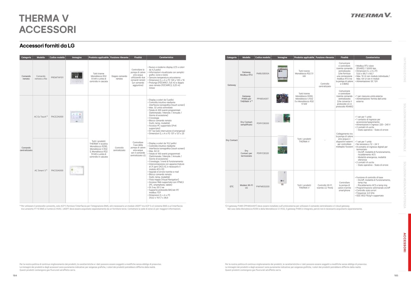 * Per utilizzare il protocollo Lonworks, solo ACP 5 fornisce l’interfaccia per l’integrazione BMS, ed