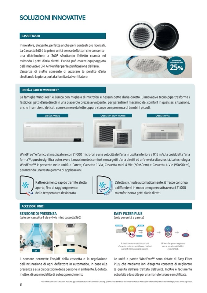 , questo significa poter avere il massimo del comfort senza getti d’aria diretti ed un’elevata silenziosità. La tecnologia