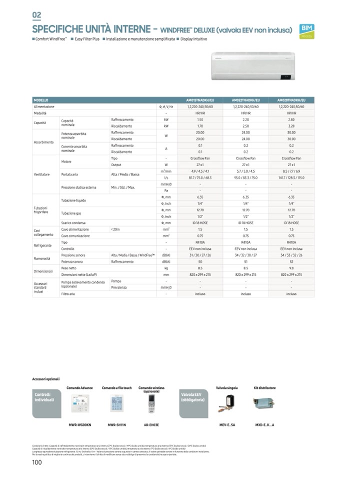 Lunghezza equivalente tubazione refrigerante: 7.5 m; Dislivello: 0 m - Valore di pressione sonora acquisito in camera anecoica. Il valore potrebbe variare in funzione delle condizioni installative.