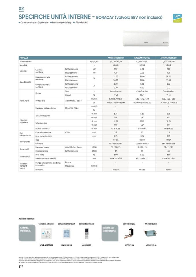 Condizioni di test: Capacità di raffreddamento nominale: temperatura aria interna 27°C (bulbo secco) / 19°C (bulbo umido); temperatura aria esterna 35°C (bulbo secco) / 24°C (bulbo umido)