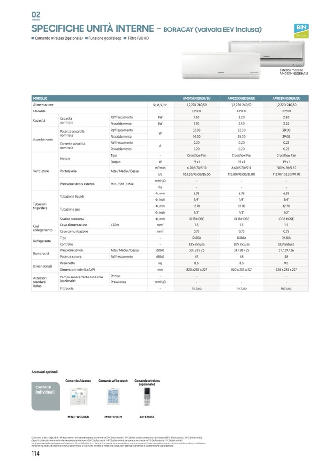 Lunghezza equivalente tubazione refrigerante: 7.5 m; Dislivello: 0 m - Valore di pressione sonora acquisito in camera anecoica. Il valore potrebbe variare in funzione delle condizioni installative.