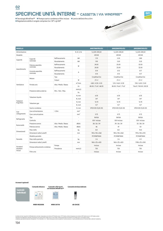 Condizioni di test: Capacità di raffreddamento nominale: temperatura aria interna 27°C (bulbo secco) / 19°C (bulbo umido); temperatura aria esterna 35°C (bulbo secco) / 24°C (bulbo umido).