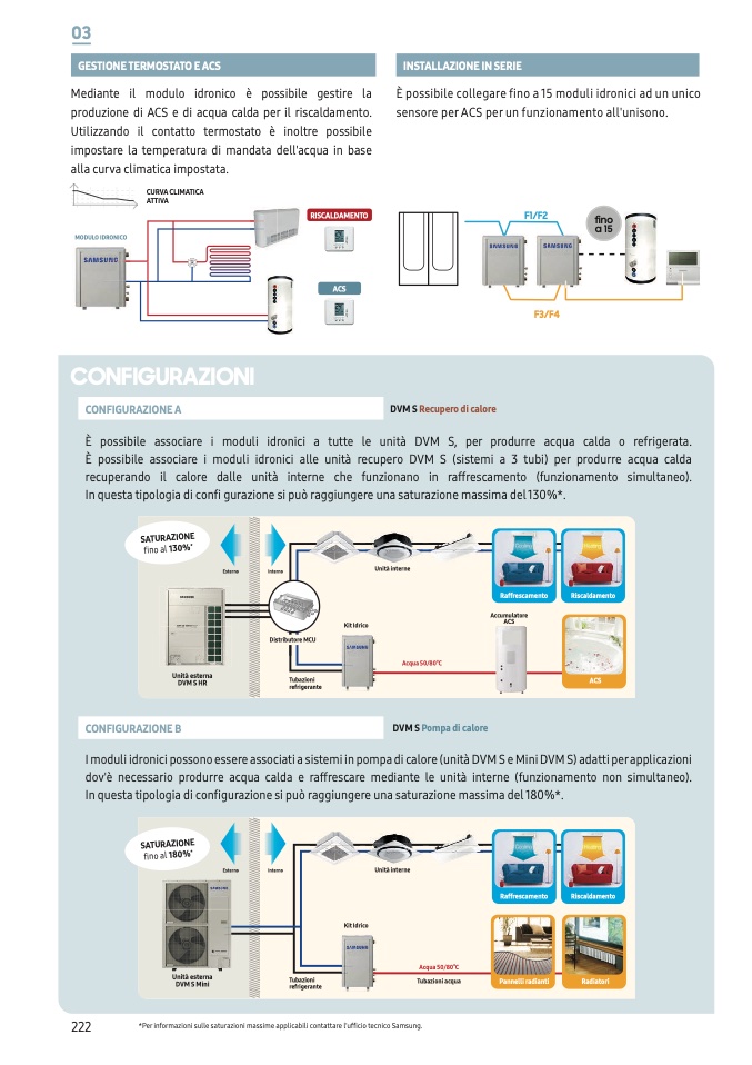 I moduli idronici possono essere associati a sistemi in pompa di calore (unità DVM S e Mini DVM S) adatti per applicazioni