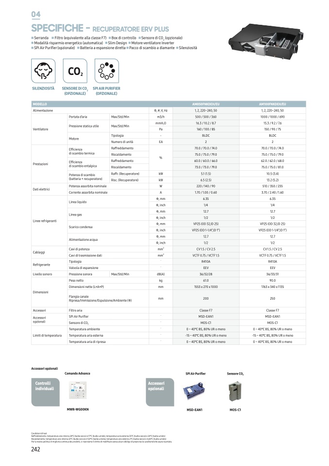 Raffreddamento: temperatura aria interna 24°C (bulbo secco) e 17°C (bulbo umido); temperatura aria esterna 35°C (bulbo secco) e 24°C (bulbo umido)