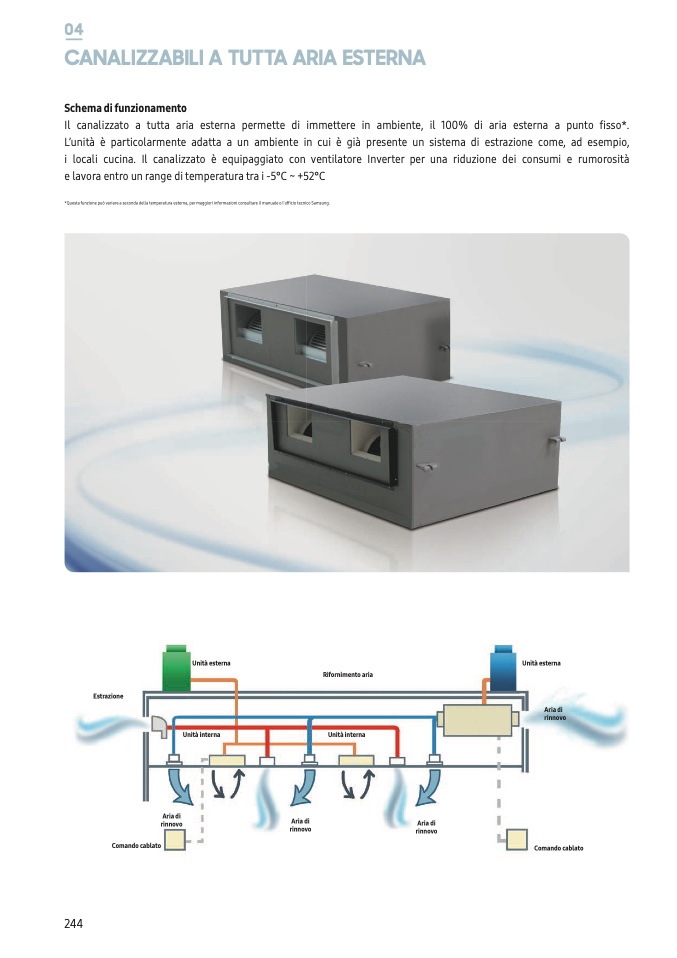 Il canalizzato a tutta aria esterna permette di immettere in ambiente, il 100% di aria esterna a punto fisso*.