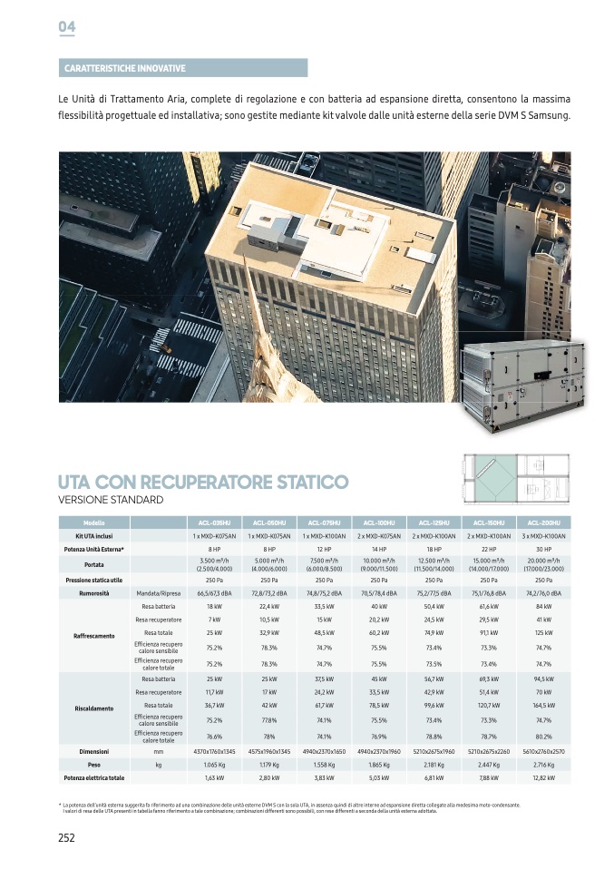 * La potenza dell’unità esterna suggerita fa riferimento ad una combinazione delle unità esterne DVM S con la sola UTA, in assenza quindi di altre interne ad espansione diretta collegate alla medesima moto-condensante.