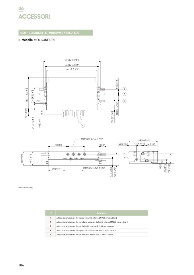 Attacco della tubazione del gas alle unità interne (Ø 6.35 mm a saldare)